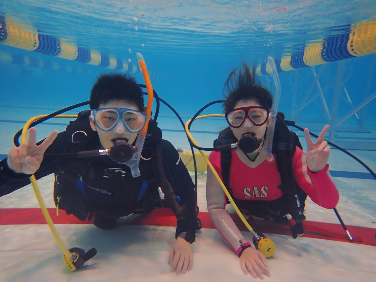 慣れて来た方にはコース内を自由に泳いでいただいたり、水中フリスビーや水中ロケットなどで遊ぶ事も出来ます♪
