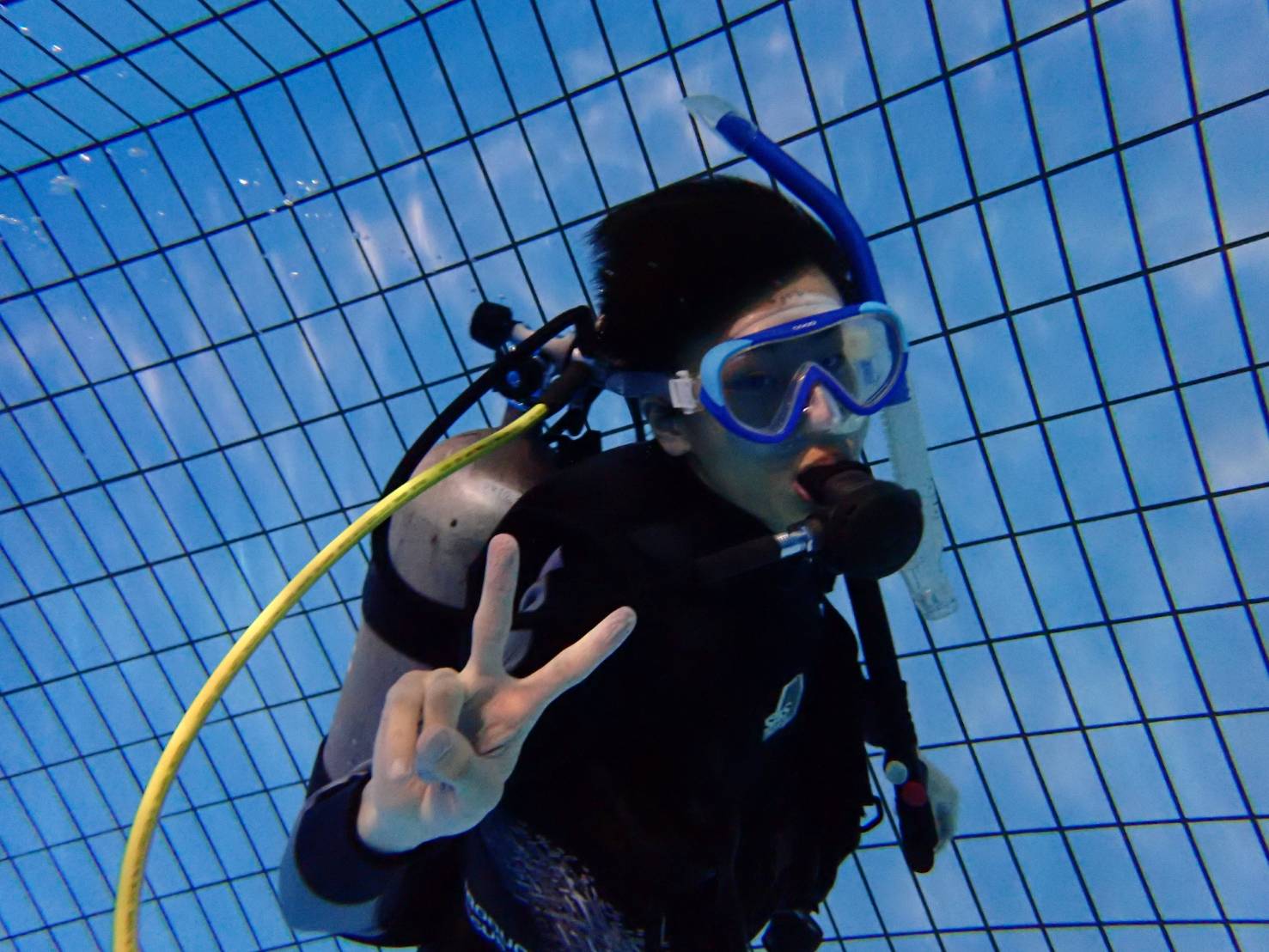 水泳用のプールは立てば顔を出せる深さで、はじめから器材を付けるのではなく比較的馴染みやすいシュノーケルからスタートします。