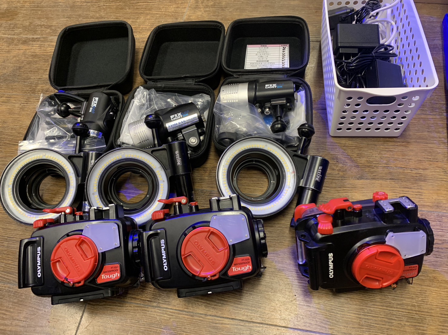 マクロ生物を撮る際に便利なリングライトや景色や大きな生物を撮影する際に必須のワイドレンズ。